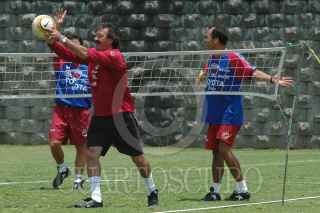 MEXICO, D.F. 12AGOSTO2005.- Ricardo Antonio Lavolpe, director técnico de la selección nacional, juega con José Guadalupe Cruz, director técnico del Atlante, en el centro de alto rendimiento pegasso. FOTO: Iván Stephens/CUARTOSCURO.COM