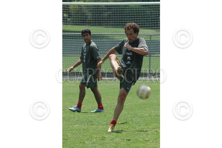 MEXICO, D.F. 12AGOSTO2005.- Ricardo Antonio Lavolpe, director técnico de la selección nacional, juega con José Guadalupe Cruz, director técnico del Atlante, en el centro de alto rendimiento pegasso. FOTO: Iván Stephens/CUARTOSCURO.COM