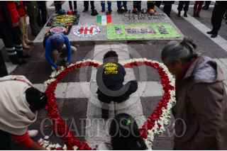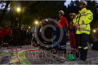 CIUDAD DE MÉXICO, 19SEPTIEMBRE2019.- Voluntarios y rescatistas que participaron en las labores de rescate en el temblor de 1985 encabezaron una ceremonia conmemorativa en la Plaza de la Solidaridad, que ocupa el terreno en el que anteriormente se encontraba el Hotel Regis, en la avenida Juárez. Ninguna autoridad oficial se hizo presente en el acto. FOTO: ARMANDO MONROY /CUARTOSCURO.COM