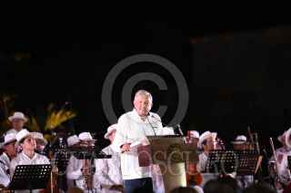 MÉRIDA, YUCATÁN, 19SEPTIEMBRE2019.- Andrés Manuel López Obrador, Presidente de México, sostuvo una cena con los participantes del encuentro de la Cumbre de Premio Nobel de la Paz. FOTO: CUARTOSCURO.COM