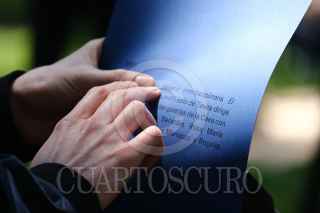 CIUDAD DE MÉXICO, 21SEPTIEMBRE2019.- Profesores y académicos de la Universidad Nacional Autónoma de México (UNAM) realizaron un performance en el que leían acontecimientos que sucedieron en la máxima casa de estudios y los lectores intervinieron sonidos con el papel y el micrófono, esto como parte la celebración de los 60 años de Casa Lago de la UNAM. FOTO: GRACIELA LÓPEZ /CUARTOSCURO.COM