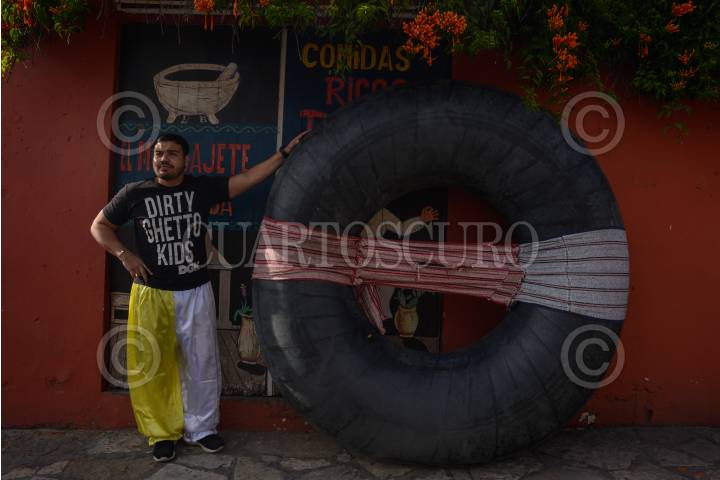 SAN CRISTOBAL DE LAS CASAS, CHIAPAS, 22SEPTIEMBRE2019.- Se llevó a cabo el tradicional desfile del Barrio de la Merced, donde se reúnen cientos de colonos disfrazados con llantas de maquinaria pesada y mascaras para acompañar en su recorrido por las calles principales de la ciudad a la Virgen de la Merced. FOTO: ISABEL MATEOS /CUARTOSCURO.COM