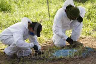 MONTERREY, NUEVO LEÓN, 23SEPTIEMBRE2019.- Un equipo de antropólogos y arqueólogos forenses trabajan en una área del municipio de García, Nuevo León, donde han encontrado más de cien restos óseos en tres meses y se pretende hallar evidencias de una narco-cocina. El equipo forense independiente, cuenta con siete miembros y es el primero creado en México por familiares de personas desaparecidas y se especializa búsqueda de restos humanos. Actualmente existen 3 mil denuncias de personas por desaparición forzada en el estado. FOTO: GABRIELA PÉREZ MONTIEL /CUARTOSCURO.COM