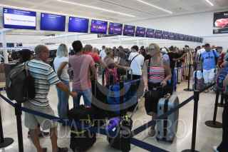 CANCÚN, QUINTANA ROO, 23SEPTIEMBRE2019.- Cientos de turistas que tenían boleto con la aerolínea británica Thomas Cook se encuentran en el Aeropuerto Internacional de Cancún para iniciar el regreso a sus lugares de origen tras declararse la quiebra de la empresa. FOTO: ELIZABETH RUIZ /CUARTOSCURO.COM