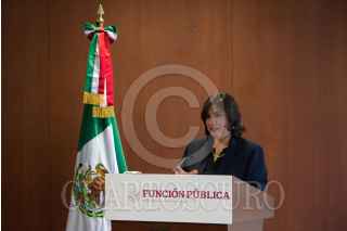 CIUDAD DE MÉXICO, 23SEPTIEMBRE2019.- Eréndida Sandoval, titular de la Secretaria de la Función Pública, encabezó la conferencia de prensa en donde se dio a conocer los resultados del Barómetro Global de la Corrupción 2019. FOTO: ROGELIO MORALES /CUARTOSCURO.COM