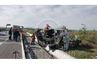 NEZAHUALCOYOTL, ESTADO DE MÉXICO, 23SEPTIEMBRE2019.- Una pipa de gas volcó la mañana de este lunes en el kilómetro 54 de la Autopista Mexiquense entre los municipios de Neza y Ecatepec. FOTO: ARMANDO MONROY /CUARTOSCURO.COM