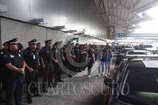 CIUDAD DE MÉXICO, 23SEPTIEMBRE2019.- La policía capitalina montó un operativo en las inmediaciones del Aeropuerto Internacional de la Ciudad de México Benito Juárez ante una posible manifestación por parte de Policías Federales que se encuentran inconformes por la forma en que fueron dados de baja tras su inconformidad de integrarse a la Guardia Nacional. FOTO: CRISTIAN HERNÁNDEZ /CUARTOSCURO.COM