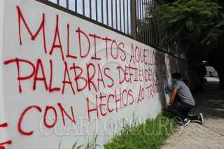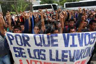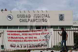CHILPANCINGO, GUERRERO, 24SEPTIEMBRE2019.- Padres de familia de los 43 junto a alumnos de las normales rurales integradas a la Federación de Estudiantes Campesinos Socialistas de México, protestaron en Ciudad Judicial del Tribunal Superior de Justicia de Guerrero en la ciudad de Chilpancingo, como parte de la jornada por la verdad, justicia y la vida de los 43 normalistas de Ayotzinapa a casi cinco años de su desaparición en la ciudad de Iguala. FOTO: EDUARDO GUERRERO /CUARTOSCURO.COM