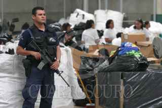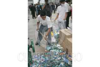 MEXICO, D.F., 30AGOSTO2005.- La Procuraduría General de la República realizó la destrucción de 200 toneladas de productos apócrifos, discos compactos, ropa, DVD, etc., en su bodega ubicada al norte de la capital. FOTO: Moisés Pablo/CUARTOSCURO.COM