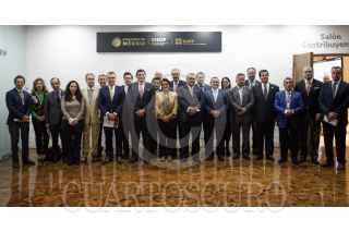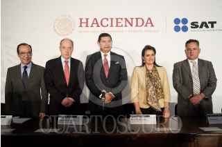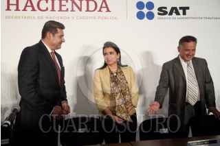CIUDAD DE MÉXICO, 24SEPTIEMBRE2019.- Javier Treviño Cantú, director general de Políticas Públicas del CCE; Alejandro Armenta Mier, senador de Morena y presidente de la Comisión de Hacienda y Crédito Público; Margarita Ríos-Farjat jefa del Servicio de Administración Tributaria (SAT); Carlos Romero Aranda, procurador Fiscal de la Federación; José Manuel Sánchez López Campos, presidente de CONCANACO, y Santiago Nieto Castillo, titular de la Unidad de Inteligencia Financiera (UIF), encabezaron conferencia de prensa tras haber sostenido una reunión con el Consejo Directivo Nacional de la Cámara Nacional de la Industria de la Transformación (Canacintra), en la que el tema central fue fijar su postura después de que diputados reformaran el artículo 28 constitucional el cual prohíben la condonación de impuestos. FOTO: MARIO JASSO /CUARTOSCURO.COM