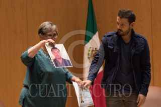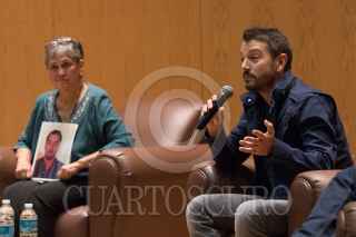CIUDAD DE MÉXICO, 25SEPTIEMBRE2019.- En las instalaciones del ITAM se presentó el documental "Sin Tregua" impulsado por la iniciativa "El Día Después", este cortometraje muestra la situación de emergencia que vive el país por la desaparición de más de 40 mil personas y de 26 mil cuerpos sin identificar, y hace escuchar la voz de mujeres y hombres que buscan a sus familiares pero ante la falta de recibir el apoyo de las autoridades han tenido que hacerlo ellos mismos con sus propios recursos, como es el caso del Movimiento por Nuestros Desaparecidos. En la presentación estuvieron presentes Araceli Rodríguez y Hermelinda Ruiz Compeán, madres de Luis Ángel León Rodríguez y Roberto Córdova Ruiz, ambos desaparecidos hace más de diez años; el actor Diego Luna y Janet Carmona de Serapaz. FOTO: MOISÉS PABLO /CUARTOSCURO.COM