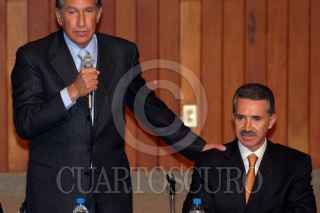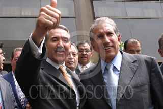 MEXICO; D.F., 31AGOSTO2005.- Roberto Madrazo, líder nacional del PRI y Arturo Montiel, pre-candidato a la presidencia por el tricolor, se dirigen a la sesión extraordinaria para seleccionar al nuevo presidente del PRI, al no haber acuerdos entre las diversas corrientes se aplazo la sesión. FOTO: Moisés Pablo/CUARTOSCURO.COM