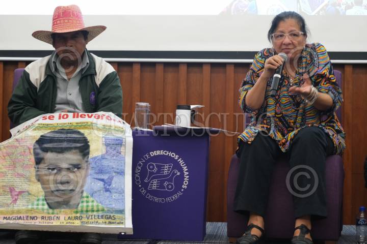 CIUDAD DE MÉXICO, 25SEPTIEMBRE2019.- Margarito Rodríguez, padre de Carlos Iván Ramírez Villareal; Estinislao Mendoza, padre de Miguel Ángel Mendoza Zacarias y Francisco Villegas, padre de Magdaleno Rubén Lauro Villegas, acompañados de Nashielli Ramírez, presidenta de la Comisión de los Derechos Humanos de la Ciudad de México (CDHCM), presentaron la proyección del documental “Ayotzinapa. El paso de la tortuga”, el cual aborda los testimonios de familiares, periodistas y compañeros de los los 43 estudiantes desaparecidos de la Escuela Rural "Isidro Burgos" el 26 septiembre del 2014; así mismo los padres de los normalistas expresaron su esperanza de encontrar la verdad y justicia. Se realizó en el salón Digna Ochoa de la CDHCM. FOTO: GRACIELA LÓPEZ /CUARTOSCURO.COM