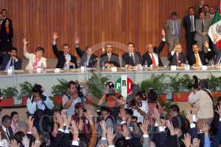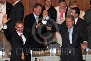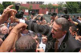 MEXICO, D.F., 31AGOSTO2005.- Roberto Madrazo, líder nacional del PRI, saluda a integrantes del SNTE, después de un receeso en la sesión extraordinaria de la Asamblea General del PRI, para buscar al sucesor del actual líder tricolor. FOTO: Moisés Pablo/CUARTOSCURO.COM