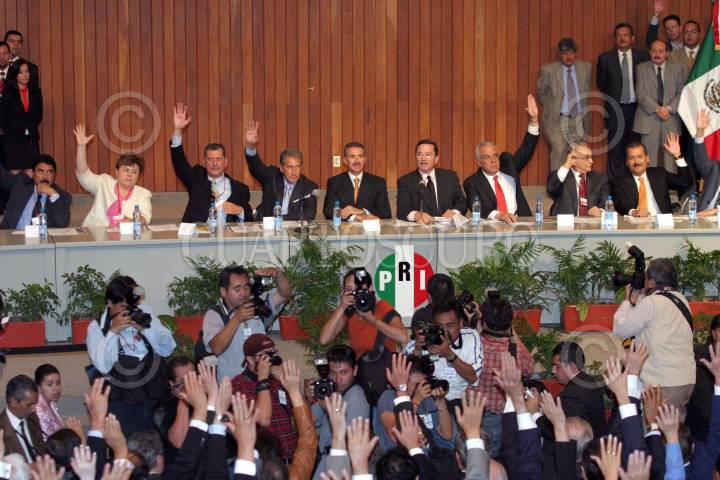 MEXICO, D.F., 31AGOSTO2005.- Roberto Madrazo, líder nacional del PRI, saluda a integrantes del SNTE, después de un receeso en la sesión extraordinaria de la Asamblea General del PRI, para buscar al sucesor del actual líder tricolor. FOTO: Moisés Pablo/CUARTOSCURO.COM