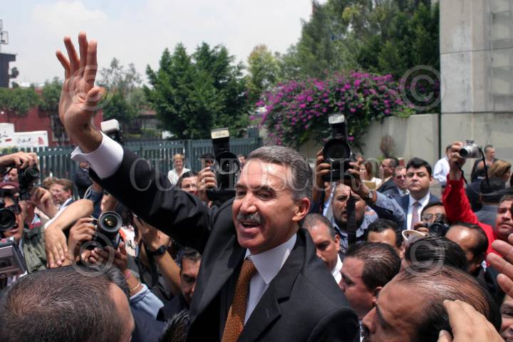 MEXICO, D.F., 31AGOSTO2005.- Roberto Madrazo, líder nacional del PRI, saluda a integrantes del SNTE, después de un receeso en la sesión extraordinaria de la Asamblea General del PRI, para buscar al sucesor del actual líder tricolor. FOTO: Moisés Pablo/CUARTOSCURO.COM