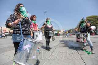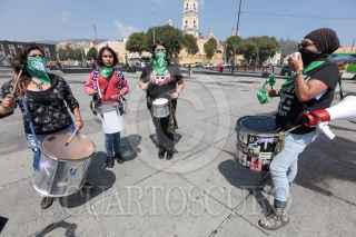 TOLUCA, ESTADO DE MÉXICO, 26SEPTIEMBRE2019.- Integrantes de DDESER Edomex realizaron una batucada como parte de la Campaña Nacional Por el Derecho al aborto libre, seguro y gratuito, como parte del movimiento #MareaVerdeMéxico. FOTO: CRISANTA ESPINOSA AGUILAR /CUARTOSCURO.COM