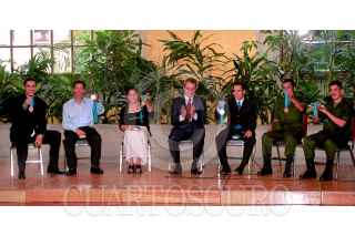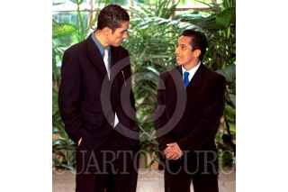 Victor Estrada y Fernando Platas conversan antes de la reunión oficial con el presidente Ernesto Zedillo en la casa presidencial. FOTO: Pedro Mera/CUARTOSCURO.COM