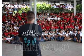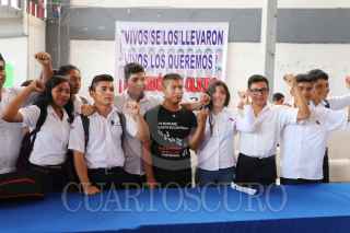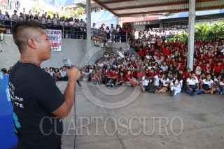 ACAPULCO, GUERRERO, 26SEPTIEMBRE2019.- Ángel Mundo Francisco, sobreviviente de la agresión que sufrieron hoy hace cinco años los normalistas de Ayotzinapa en Iguala visitó a los alumnos de las preparatorias 27 y 17, y la facultad de Derecho de la Universidad Autónoma de Guerrero (Uagro), donde expuso su testimonio en un acto conmemorativo. Ángel denunció que en el proceso de investigación, las autoridades del gobierno federal del anterior sexenio lo intimidaron y criminalizaron a las víctimas, pidió castigo para los que crearon la “Verdad histórica” del caso. FOTO: BERNANDINO HERNÁNDEZ /CUARTOSCURO.COM