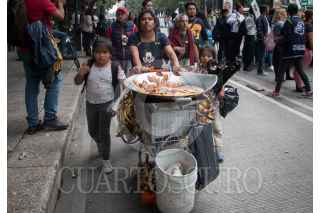 CIUDAD DE MÉXICO, 26SEPTIEMBRE2019.- Previo a manifestación en Av. Refoma mujer de origen indigena acompaña de sus dos hijas venden platanos machos en un carrito de mandado a los transeúntes. FOTO: ANDREA MURCIA /CUARTOSCURO.COM