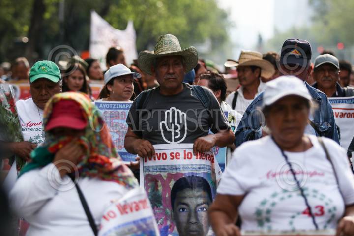 CIUDAD DE MÉXICO, 26SEPTIEMBRE2019.- Cientos de personas marcharon del Ángel de la Independencia al Zócalo capitalino a cinco años de la desaparición de los 43 normalistas de Ayotzinapa. Durante la manifestación un grupo de encapuchados realizaron pintas y ruptura de locales a su paso. FOTO: GALO CAÑAS /CUARTOSCURO.COM