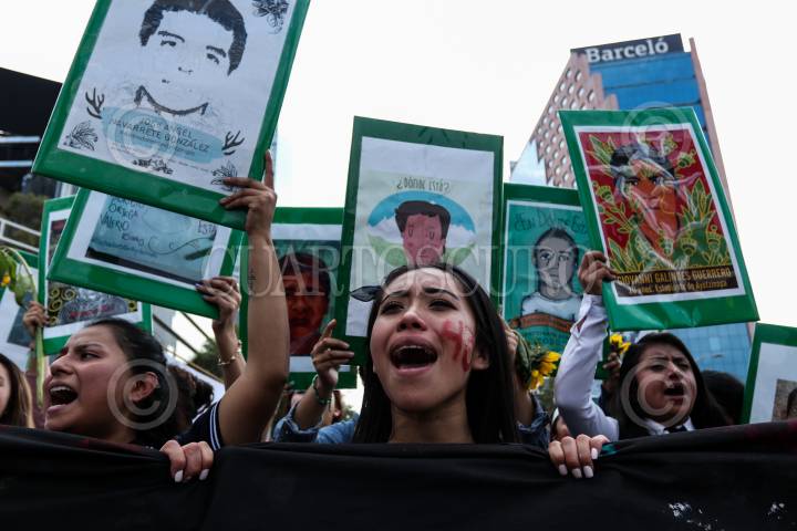 CIUDAD DE MÉXICO, 26SEPTIEMBRE2019.- Cientos de personas marcharon del Ángel de la Independencia al Zócalo capitalino a cinco años de la desaparición de los 43 normalistas de Ayotzinapa. Durante la manifestación un grupo de encapuchados realizaron pintas y ruptura de locales a su paso. FOTO: GALO CAÑAS /CUARTOSCURO.COM
