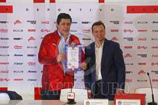 ZAPOPAN, JALISCO, 26SEPTIEMBRE2019.- Luis Fernando Tena fue presentado esta tarde como nuevo Director Técnico de las Chivas del Guadalajara, dicha presentación corrió a cargo de Mariano Varela Director Deportivo de la Institución y se llevo a cabo en la sala de prensa José Ramón Fernández del Estadio Akron. FOTO: FERNANDO CARRANZA GARCIA / CUARTOSCURO.COM