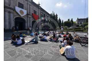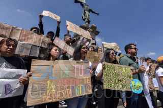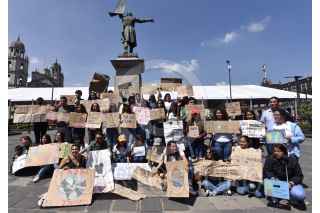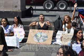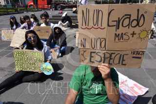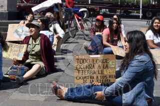 TOLUCA, ESTADO DE MÉXICO, 27SEPTIEMBRE2019.- Integrantes del movimiento Fridays For Future en Toluca realizaron un plantón pacifico frente a la Cámara de Diputados, haciendo un llamado a autoridades estatales y municipales a que implementen políticas públicas que ayuden a frenar el cambio climático. FOTO: CRISANTA ESPINOSA AGUILAR /CUARTOSCURO.COM