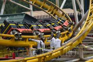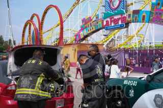 CIUDAD DE MÉXICO, 28SEPTIEMBRE2019.- Dos personas murieron y dos más resultaron heridas durante un accidente en el juego "Quimera", en la feria de Chapultepec. El accidente ocurrió cuando un carrito mecánico se descarriló y chocó contra un muro. Bomberos, policías e integrantes de Protección Civil llegaron a la zona a resguardar el lugar. Al parecer el parque de juegos mecánicos permanecerá cerrado hasta nuevo aviso. FOTO: GRACIELA LÓPEZ /CUARTOSCURO.COM