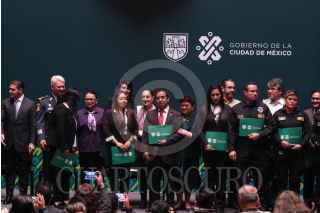 CIUDAD DE MÉXICO, 28SEPTIEMBRE2019.- Rosa Isela Rodríguez, secretaria de Gobierno; Claudia Sheinbaum, jefa de Gobierno y Ernestina Godoy, procuradora de Justicia, durante la Ceremonia de Entrega de Reconocimientos a Policías de Investigación, realizada en el patio del Antiguo Palacio del Ayuntamiento. FOTO: GRACIELA LÓPEZ /CUARTOSCURO.COM