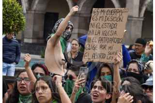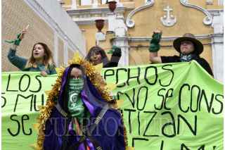 TOLUCA, ESTADO DE MÉXICO, 28SEPTIEMBRE2019.- Mujeres vestidas de negro y con pañuelos verdes se unieron a la marcha de la “Marea Verde” como parte de las movilizaciones en la mayoría de estados de la República Mexicana en el marco del Día de Acción Global por el Acceso al Aborto Legal y Seguro. FOTO: CRISANTA ESPINOSA AGUILAR /CUARTOSCURO.COM