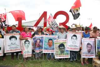 ACAPULCO, GUERRERO, 28SEPTIEMBRE2019.- Para recordar y conmemorar el quinto aniversario de la desaparición de los 43 estudiantes de la escuela Normal Rural Raúl Isidro Burgos de Ayotzinapa, la presidenta municipal, Adela Román Ocampo, junto a los padres de las víctimas, develó un antimonumento +43 en el entronque de glorieta de Vía Rápida y la costera Miguel Alemán. Durante la develación del antimonumento, estudiantes, familiares de los 43 desaparecidos y trabajadores del Ayuntamiento, lanzaron gritos de libertad. Posteriormente, se echaron al vuelo dos palomas blancas de solidaridad y esperanza para encontrar a las víctimas. FOTO: BERNANDINO HERNÁNDEZ /CUARTOSCURO.COM