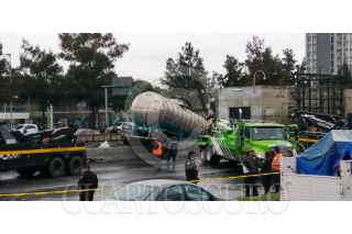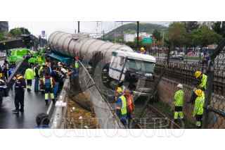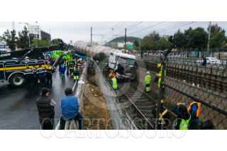 CIUDAD DE MÉXICO, 29SEPTIEMBRE2019.- Un trailer que circulaba sobre avenida Zaragoza perrito el control lo que provocó que se metiera a las vías del metro de la la Línea A, a la altura de Tepalcates dirección centro. FOTO: ARMANDO MONROY /CUARTOSCURO.COM