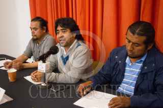 CIUDAD DE MÉXICO, 30SEPTIEMBRE2019.- Profesores del CCH Naucalpan y Vallejo, representados por Miguel Angel Rangel, Salvador Hernández y Óscar Reyes, en conferencia de prensa hablaron sobre la problemática de las plazas para maestros de todos los niveles en la UNAM. FOTO: VICTORIA VALTIERRA /CUARTOSCURO.COM