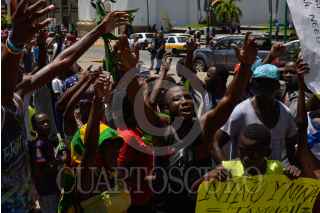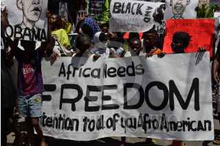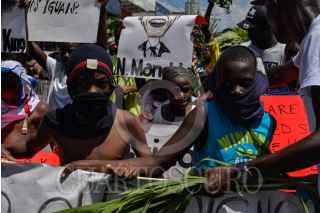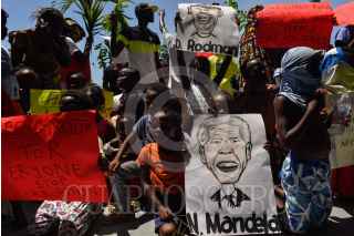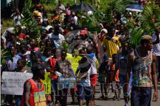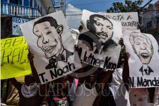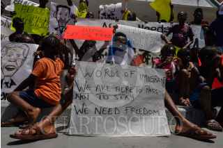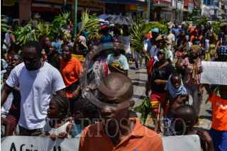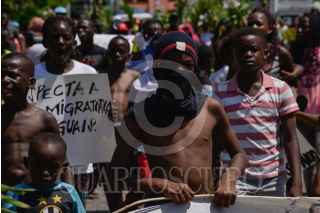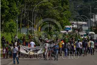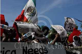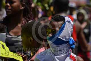 TAPACHUALA, CHIAPAS, 30SEPTIEMBRE2019.- Los migrantes africanos que continuan varados en el municipio, el día de hoy cumple cuarenta y dos días de protestas y manifestaciones, exigiendo al gobierno mexicano que les resuelva su situación migratoria ya que no pueden continuar su camino hacia el norte del continente. Por primera vez la marcha es liderada por los niños. FOTO: ISABEL MATEOS /CUARTOSCURO.COM