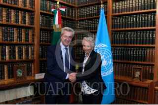 CIUDAD DE MÉXICO, 30SEPTIEMBRE2019.- La secretaria de Gobernación, Olga Sánchez Cordero, recibió al Alto Comisionado de Naciones Unidas para los Refugiados, Filippo Grandi, con quien acordó fortalecer los mecanismos de asilo y protección en el país, y continuar colaborando para el cumplimiento de las obligaciones internacionales de México en la materia. Expresó la titular de Gobernación que México mantiene una tradición de refugio y quiere seguir siendo un país hospitalario, con una perspectiva de trato humanitario y de respeto a los derechos humanos. FOTO: SEGOB /CUARTOSCURO.COM