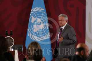 CIUDAD DE MÉXICO, 01OCTUBRE2019.- Andrés Manuel López Obrador, presidente de México, durante la conferencia matutina donde fue inaugurada la Tercera Reunión de la Conferencia Regional Sobre Desarrollo Social de América Latina y el Caribe. FOTO: GALO CAÑAS /CUARTOSCURO.COM