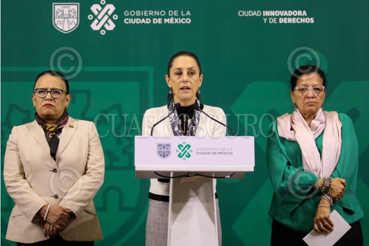 CIUDAD DE MÉXICO, 01OCTUBRE2019.- Claudia Sheinbaum Pardo, jefa de Gobierno de la Ciudad de México, en compañía de Nashieli Ramírez, presidenta de La Comisión de Derechos Humanos de la capital, y Rosa Icela Rodríguez, secretaria de Gobierno, informaron sobre las medidas para evitar los conatos de violencia el día de mañana por la conmemoración del 02 de Octubre. La jefa de gobierno destacó que se implementará un cordón humano de funcionarios de diversas dependencias que vigilarán en caso de la presencia de grupos encapuchados. Por su parte, la ombudsman capitalina destacó la participación de dos ombudsman móvil que vigilarán el principio y el fin de la movilización. FOTO: GALO CAÑAS /CUARTOSCURO.COM