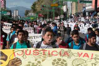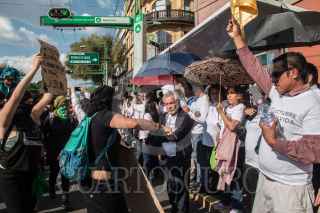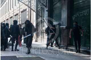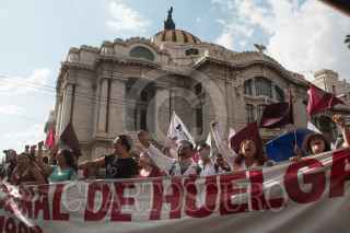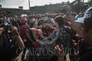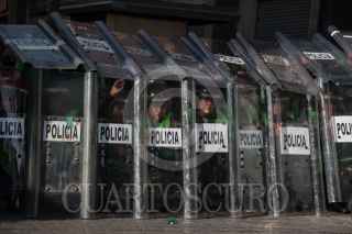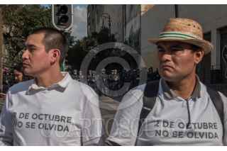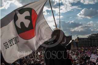 MÉXICO, 02OCTUBRE2019.- Miles de estudiantes, normales rurales, organizaciones sociales, campesinos, colectivos anarquistas, comité 68 y de los 43 estudiantes desaparecidos de Ayotzinapa, marcharon de diferentes salidas hacía el Zócalo Capitalino, entre el cinturón de la paz los cuales pretendían evitar que los contingentes de jóvenes anarquistas realizaran destrozos a su paso, esto por el aniversario 51 del ataque estudiantil en Tlatelolco. FOTO: ANDREA MURCIA /CUARTOSCURO.COM