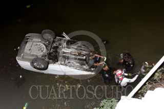 CIUDAD DE MÉXICO., 03OCTUBRE2019.- Esta madrugada servicios de emergencia rescatoron un auto que cayó al canal río de Los Remedios, de donde el conductor logro salvar la vida, saliendo ileso. Los hechos tuvieron lugar en Acueducto de Guadalupe y avenida Ticoman en la colonia Compositores, en alcaldía de Gustavo A. Madero. FOTO: LUIS CARBAYO /CUARTOSCURO.COM