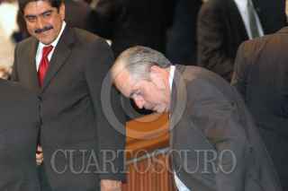 MEXICO, D.F., 01SEPTIEMBRE2005.- Miguel Espino, presidente nacional del PAN y Leonel Cota Montaño, presidente nacional del PRD, durante el V Informe de Gobierno, en la Cámara de Diputados. FOTO: Moisés Pablo/CUARTOSCURO.COM