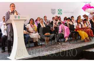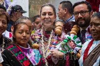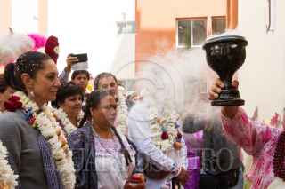 CIUDAD DE MÉXICO, 03OCTUBRE2019.- La jefa del Gobierno de la Ciudad, Claudia Sheinbaum Pardo, acudió a la entrega simbólica de vivienda para grupos Indígenas, en la Calle Cañitas de la alcaldía de Miguel Hidalgo. La acompaño Victor Hugo Romo e Ileana Villalobos. Rituales regalos y fiesta para la jefa del Gobierno de la Ciudad. FOTO: VICTORIA VALTIERRA /CUARTOSCURO.COM
