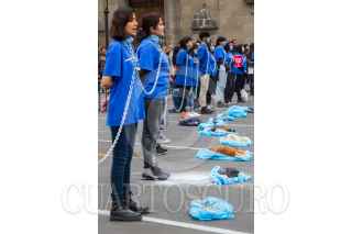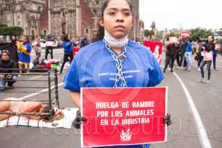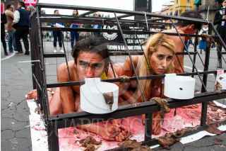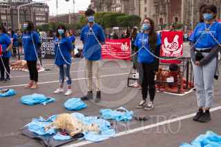 CIUDAD DE MÉXICO, 04OCTUBRE2019.- Activistas en contra del maltrato animal, se manifestaron frente a Palacio Nacional, realizaron un performance para concientizar a la gente sobre este problema. FOTO: VICTORIA VALTIERRA /CUARTOSCURO.COM