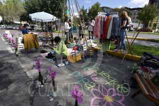 TOLUCA, ESTADO DE MÉXICO, 04OCTUBRE2019.- Estudiantes, activistas y voluntarios de diversos colectivos participaron en el Parking Day, instalado en la avenida Vicente Guerrero, está iniciativa busca transformar por un día los lugares de estacionamiento en pequeñas áreas verdes y de esparcimiento, como una forma de concientizarse a la población de la importancia de espacios públicos. FOTO: CRISANTA ESPINOSA AGUILAR /CUARTOSCURO.COM
