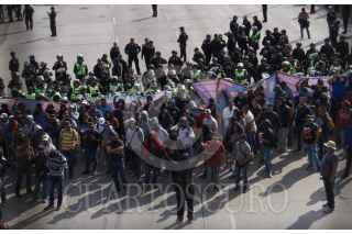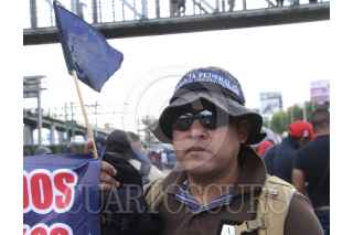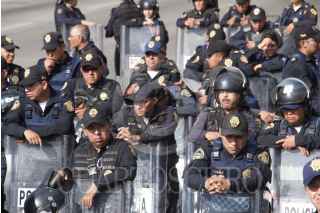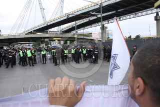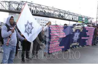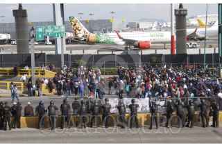 CIUDAD DE MÉXICO, 04OCTUBRE2019.- Elementos de la extinta Policía Federal bloquearon Circuito Interior, el cual es uno de los principales accesos al Aeropuerto Internacional de la Ciudad de México, dicha protesta se debe a que los inconformes no están de acuerdo con los montos de liquidación. FOTO: ROGELIO MORALES /CUARTOSCURO.COM