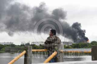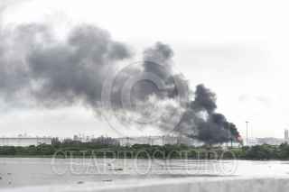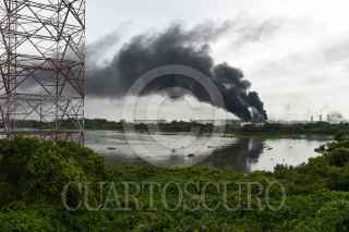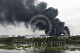 COATZACOALCOS, VERACRUZ, 06OCTUBRE2019.- Se registró un incendio en uno de los contenedores ubicados en la terminal marítima de Pajaritos pertenecientes al grupo de complejos petroquimicos de Pemex en la ciudad de Coatzacoalcos. FOTO: ÁNGEL HERNÁNDEZ /CUARTOSCURO.COM