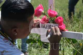 ECATEPEC, ESTADO DE MÉXICO, 06OCTUBRE2019.- Familiares de víctimas de feminicidios en este municipio y el colectivo "Mujeres de la periferia para la periferia" realizaron la protesta "Caravana contra los feminicidios en Ecatepec, para que no nos asesinen por ser mujeres". Se realizó un recorrido por cuatro lugares diferentes, como forma de acto de memoria y visibilización en exigencia de Justicia. En el primer punto se colocaron flores en memoria de Samantha, una niña de 2 años, quien fue asesinada en la calle Claveles, colonia Vista Hermosa. En el segundo punto se realizó un performance en memoria de Angélica y Karla, quiénes fueron asesinadas después de un baile, en la colonia Jardines de Morelos. El tercer punto lo encabezó la "Organización de trabajadoras de México", en la que colocaron flores y prendieron veladoras en el altar dedicado a las diferentes víctimas del Monstruo de Ecatepec. Y por último, se realizó un performance como forma de protesta frente al Palacio de Gobierno, para exigir a las autoridades Verdad y Justicia, así como más seguridad para todas las niñas y mujeres de la localidad. FOTO: GRACIELA LÓPEZ /CUARTOSCURO.COM