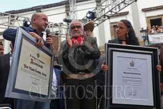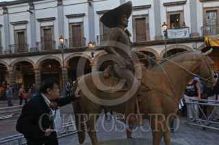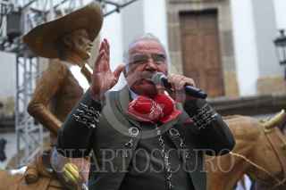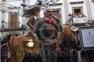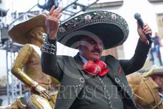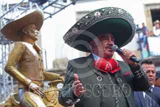 GUADALAJARA, JALISCO, 06OCTUBRE2019.- Esta tarde en la Plaza de los Mariachis y ante cientos de personas se develo una estatua ecuestre del Charro de Huentitán Vicente Fernández, posteriormente a esto ofreció un concierto ante miles de personas en la explanada del Instituto Cultural Cabañas. FOTO: FERNANDO CARRANZA GARCIA / CUARTOSCURO.COM