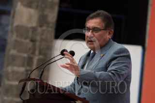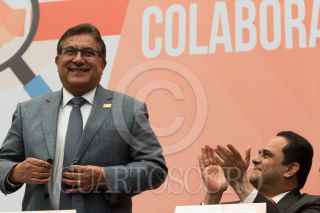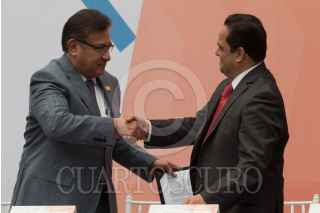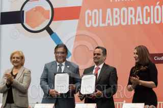 CIUDAD DE MÉXICO, 07OCTUBRE2019.- Alfonso Cepeda Sala, secretario general del SNTE, y Francisco Javier Acuña Llamas, comisionado presidente del Instituto Nacional de Transparencia, Acceso a la Información y Protección de Datos Personales (INAI), encabezaron la firma de un convenio de colaboración entre ambos organismos. FOTO: MOISÉS PABLO /CUARTOSCURO.COM