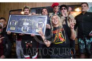 CIUDAD DE MÉXICO, 07OCTUBRE2019.- Los Auténticos Decadentes, grupo de Rock Argentino, anunció en conferencia de prensa su tour "Fiesta Nacional", el cual se presentará en Plaza Condesa. Además recibieron disco de oro por parte de su compañía disquera. FOTO: VICTORIA VALTIERRA /CUARTOSCURO.COM